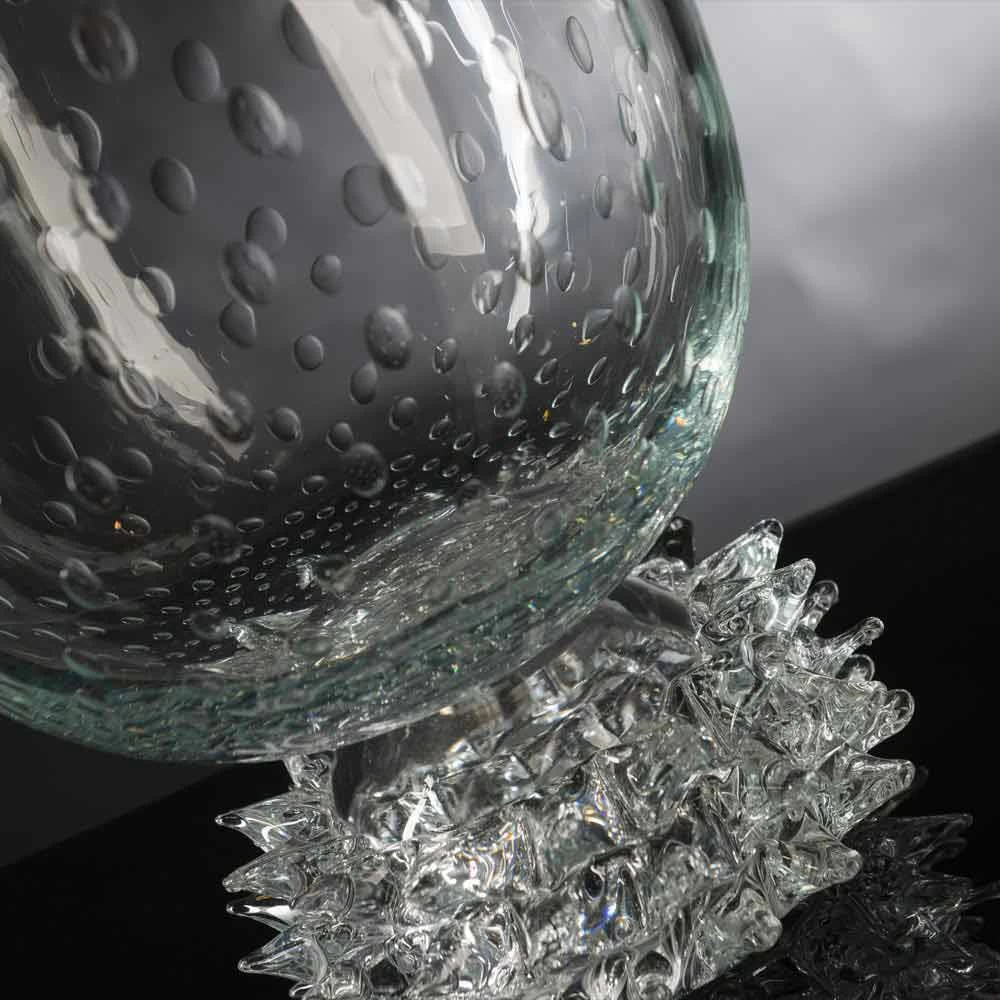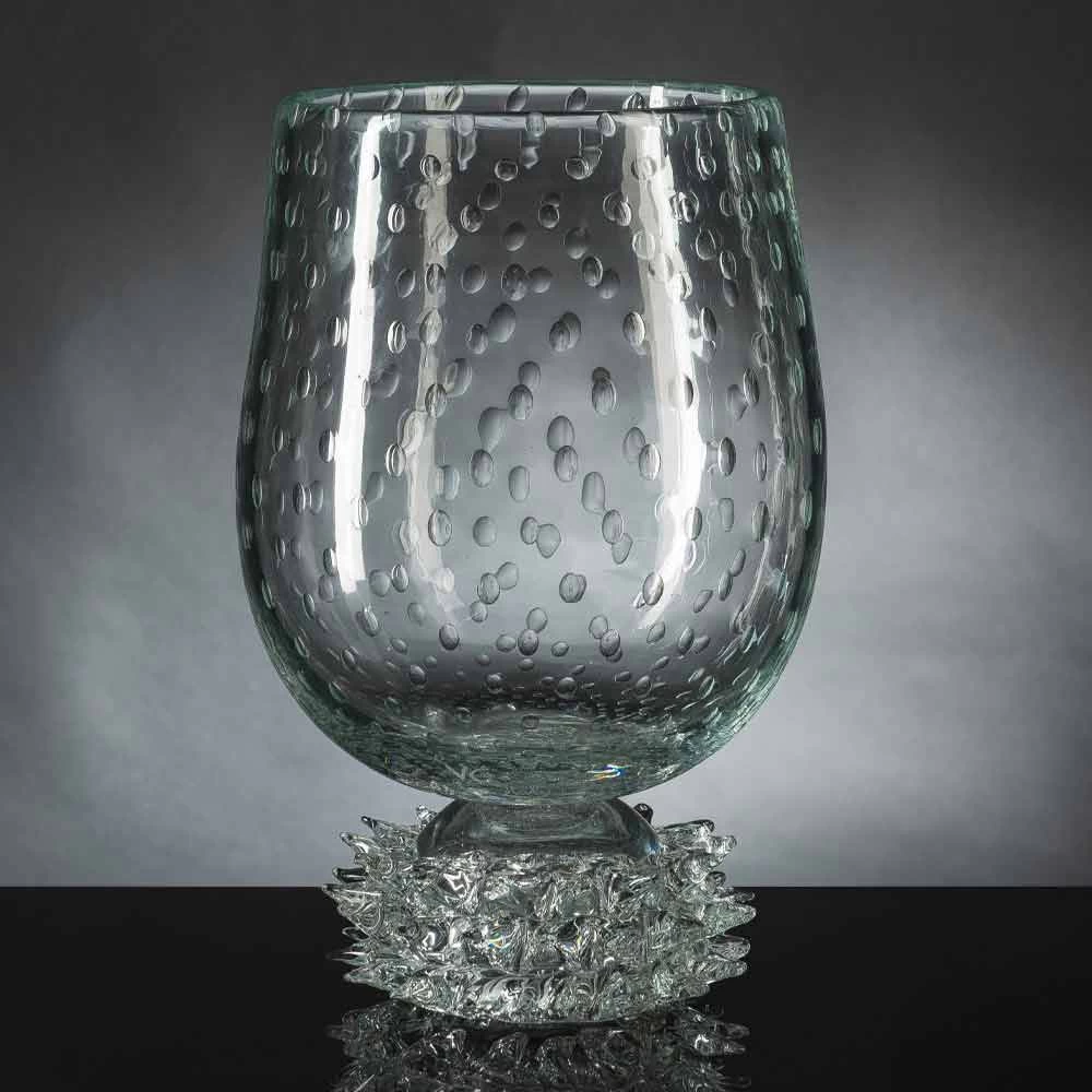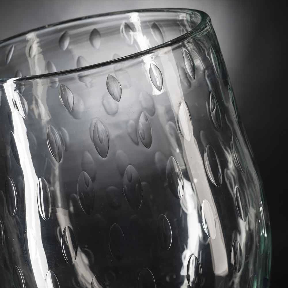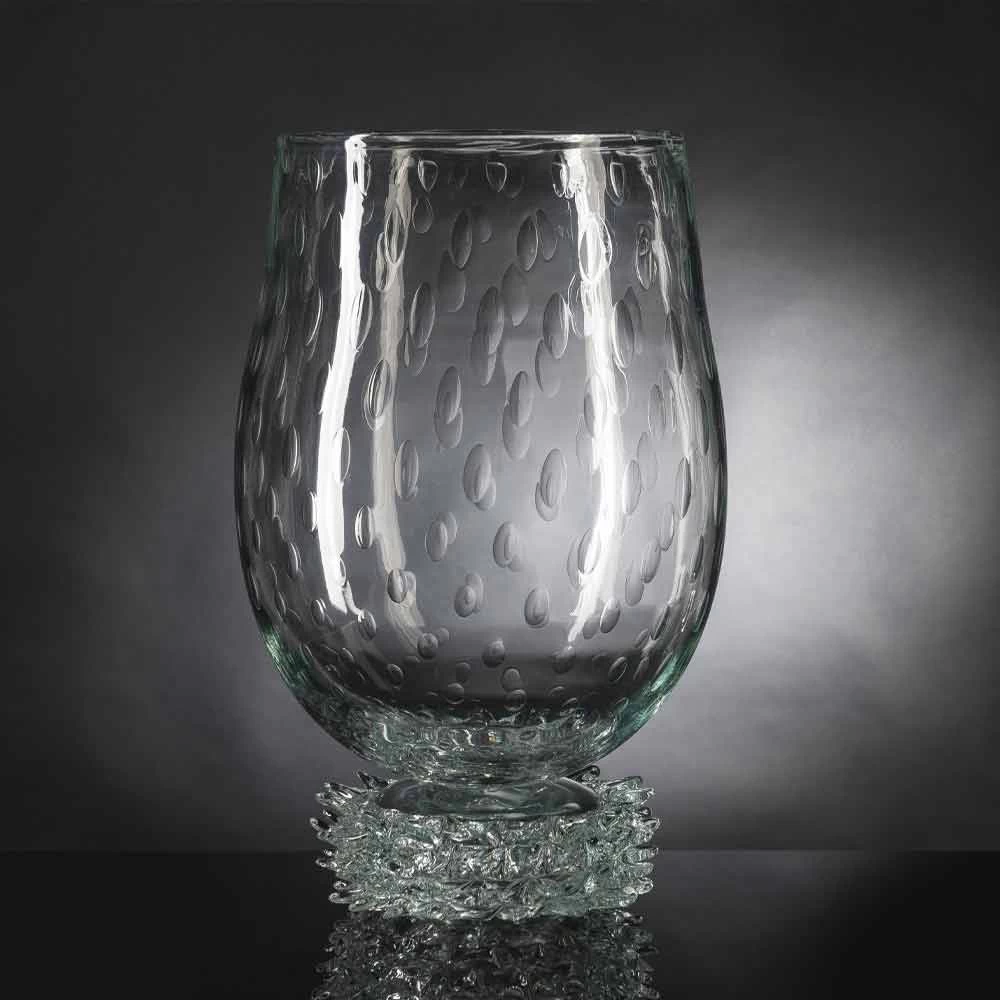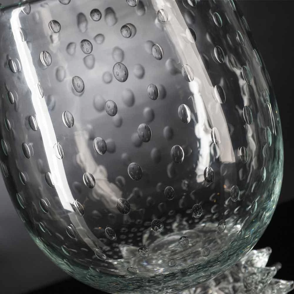 Vase décoratif d’intérieur entièrement fabriqué en Italie en verre soufflé de Murano transparent avec base travaillée. Un complément caractérisé par une esthétique extrêmement élégante idéale pour des situations stylistiques avec un mobilier élégant dans lequel créer une harmonie parfaite grâce à des objets qui se complètent pour une atmosphère unique et sensationnelle . Le point fort de ce vase est la texture particulière qui recouvre toute la structure ainsi que le magnifique détail travaillé positionné à la base, éléments qui soulignent son style raffiné pour un résultat exclusif avec un fort impact visuel . Un design idéal pour les environnements les plus variés, de l’ameublement à celui des hôtels, restaurants, espaces contract, spas mais aussi comme cadre pour des événements et des mariages.