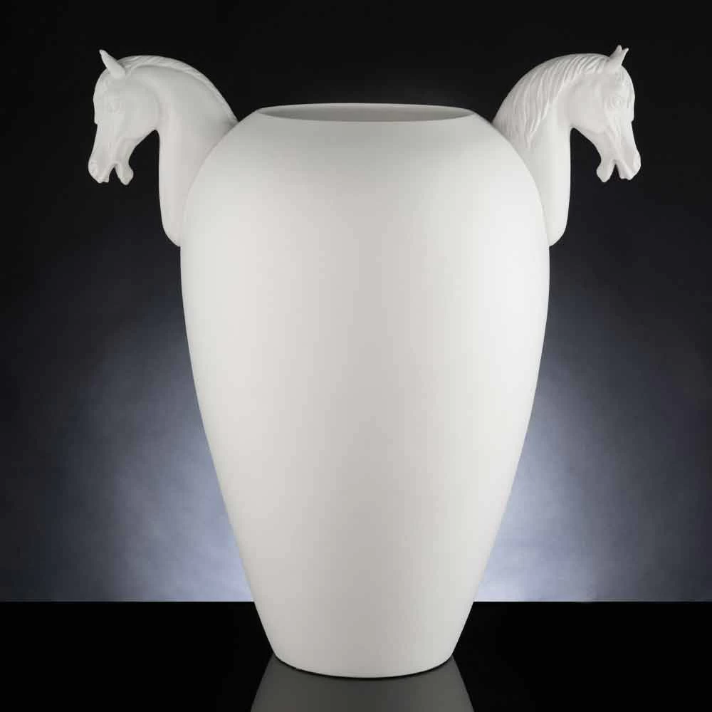 Vase décoratif en céramique fait à la main en Italie par des artisans experts du secteur depuis des générations. Une esthétique unique caractérisée par des lignes et des formes simples enrichies par les deux détails latéraux en forme de cheval qui soulignent son originalité et en font une solution parfaite à la fois pour les environnements de style classique et pour les espaces plus modernes dans lesquels il crée un merveilleux jeu de contrastes entre différents styles grâce aussi aux merveilleuses finitions proposées qui offrent une solution sobre et polyvalente et une idée plus excentrique avec un fort impact scénographique. L’utilisation de la céramique et de l’ artisanat augmente sa valeur et sa valeur pour donner vie à un résultat exclusif et de haute qualité . Un design idéal pour les environnements les plus variés, de l’ameublement à celui des hôtels, restaurants, espaces contract, spas mais aussi comme cadre pour des événements et des mariages.