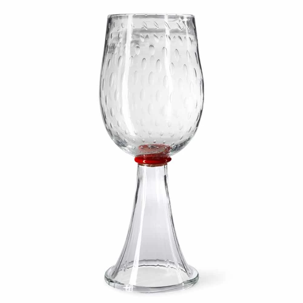 Vase d’intérieur en verre de Murano transparent avec détail rouge fabriqué en Italie.