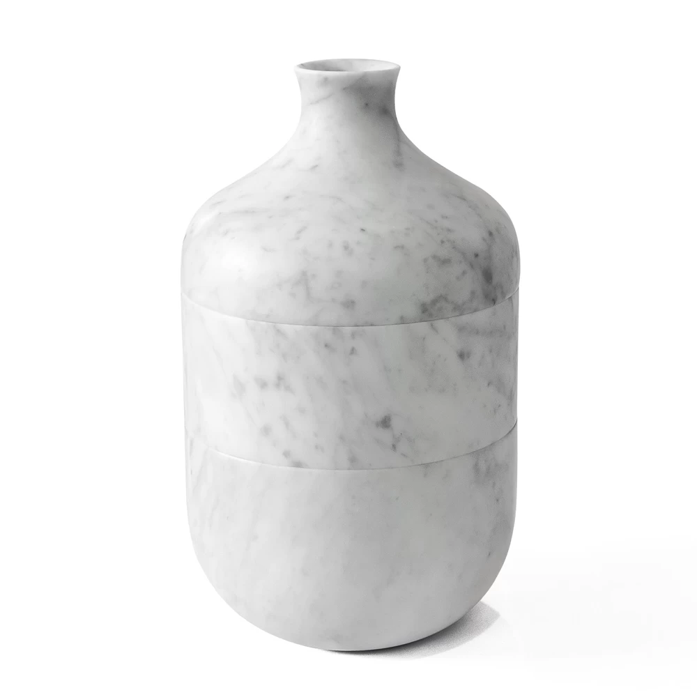 Vase décoratif en marbre blanc de Carrare design en 3 parties fabriqué en Italie.