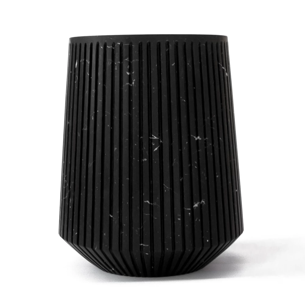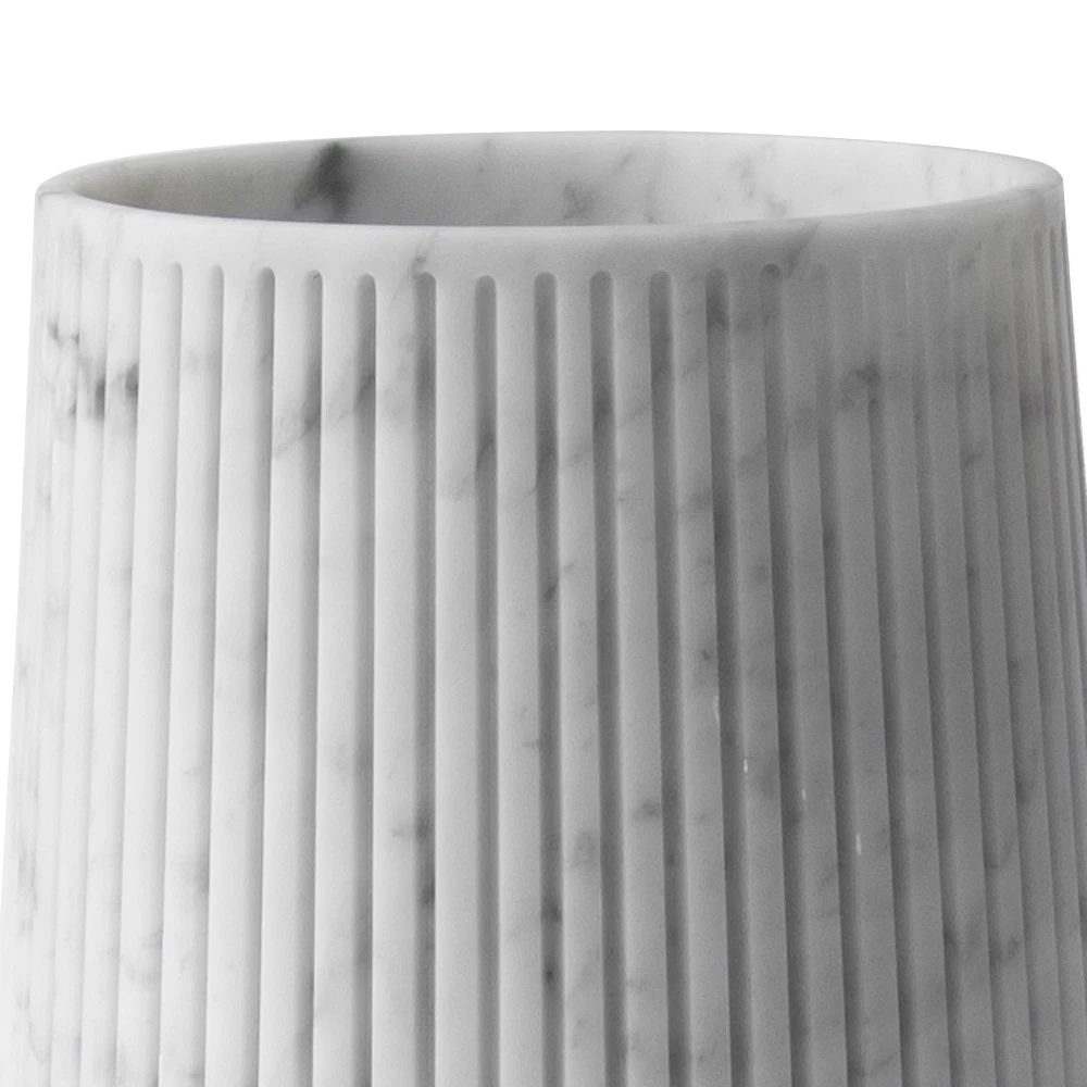 Grand vase artisanal en marbre blanc ou noir avec des rayures de design made in Italy.