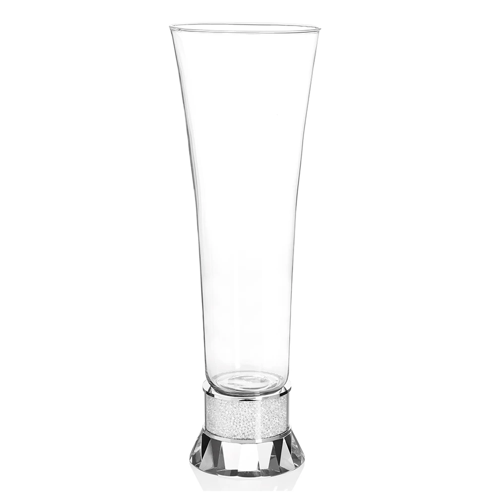 Vase décoratif en verre et métal argenté avec cristaux, 2 hauteurs.