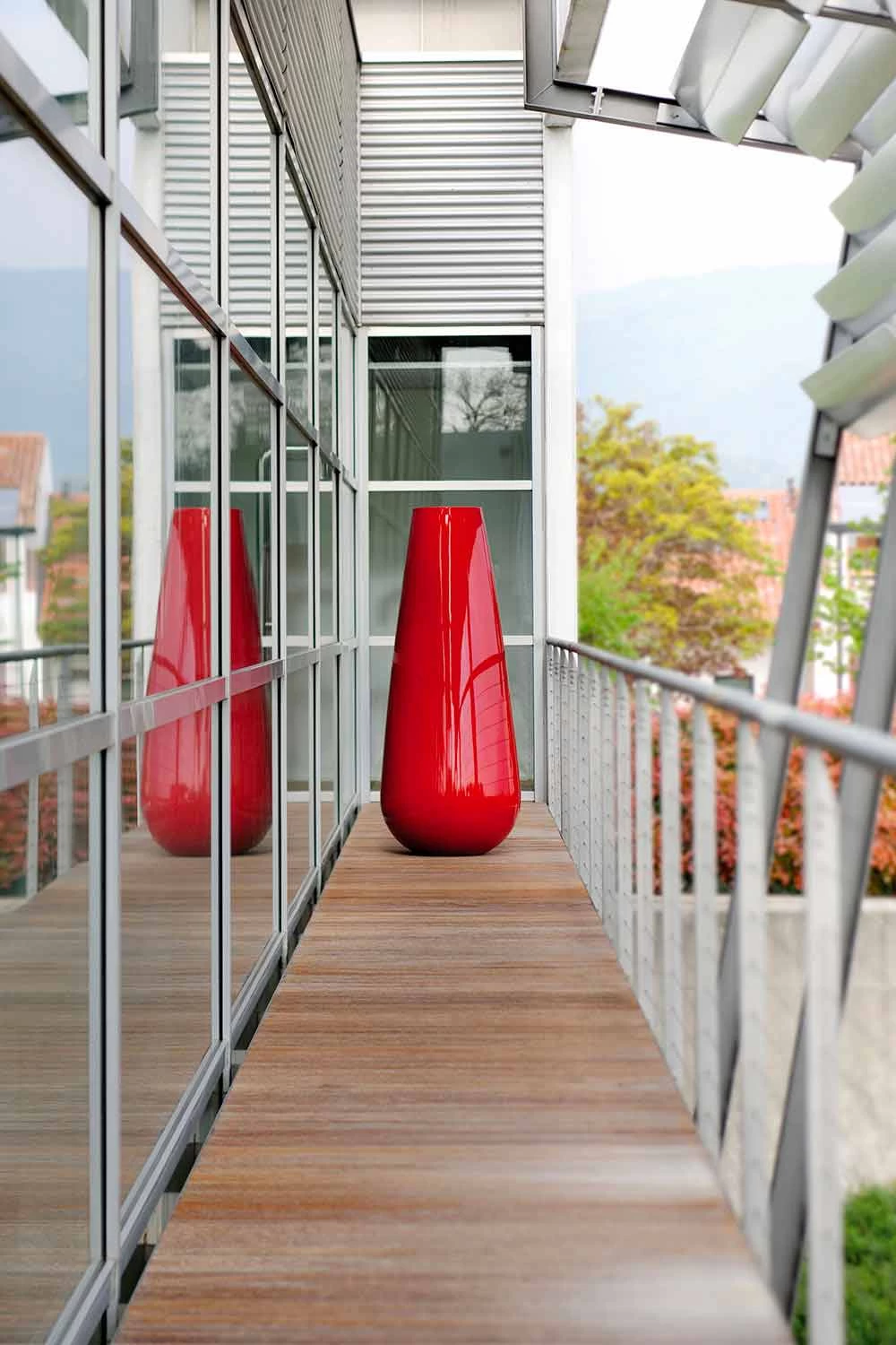 Grand vase design décoratif en polyéthylène pour extérieur Made in Italy.