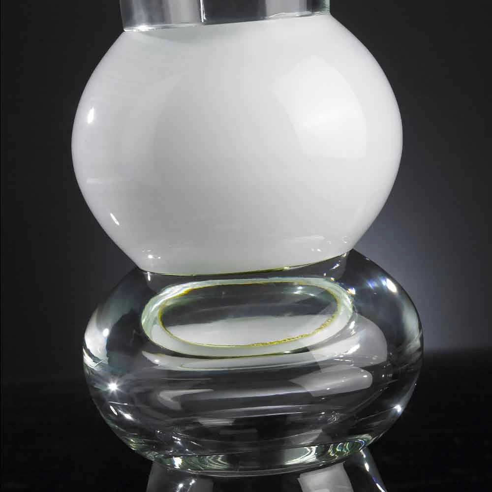 Vase décoratif d’intérieur en verre blanc et transparent Fabriqué en Italie.